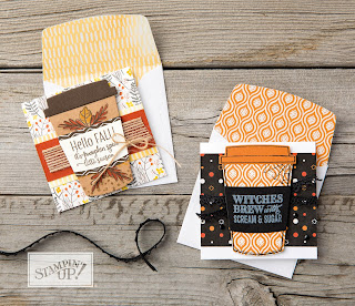These are a couple of the samples you can find in the holiday catalog. I love the different sayings for the wrap around the cup. At my class, I decided to use both sets to show how much of a value both sets and framelits are.