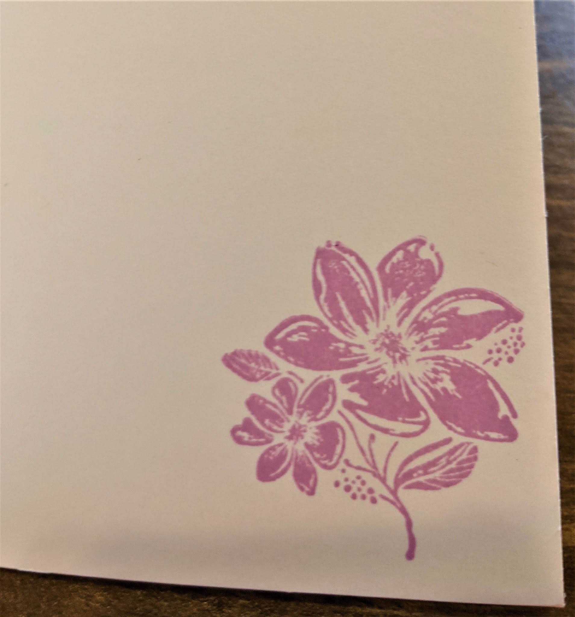 This is a great flower from the Elegantly Said Stamp set. It is a clear mount which means you can color right onto the rubber for so many different coloring choices. I was keeping with Fresh Freesia today, so I simply inked the stamp with that. It is beautiful!
